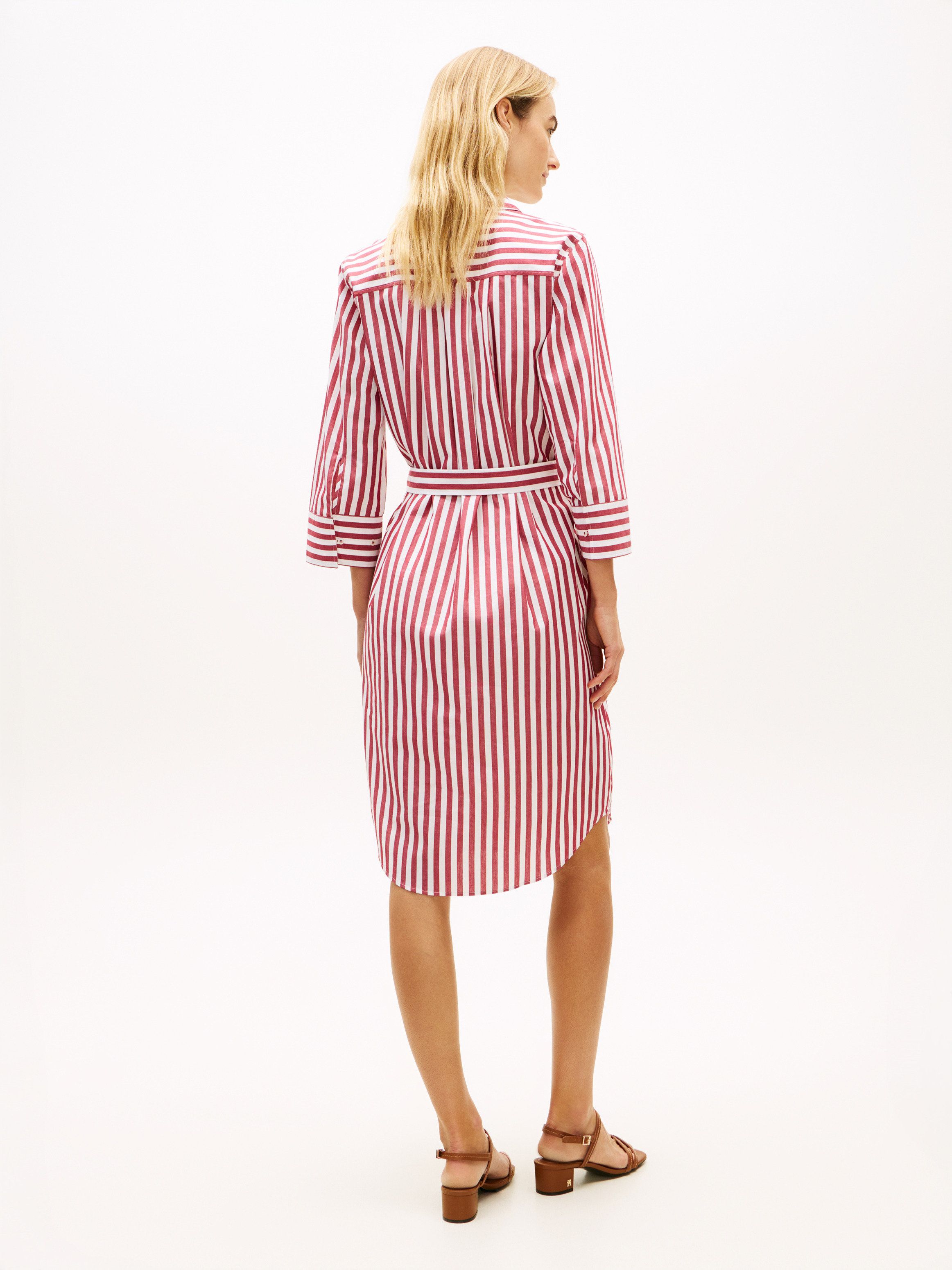 This midi-length shirt dress delivers a smart look with its crisp pure cotton poplin fabric, back pleats and waist-cinching tie belt.