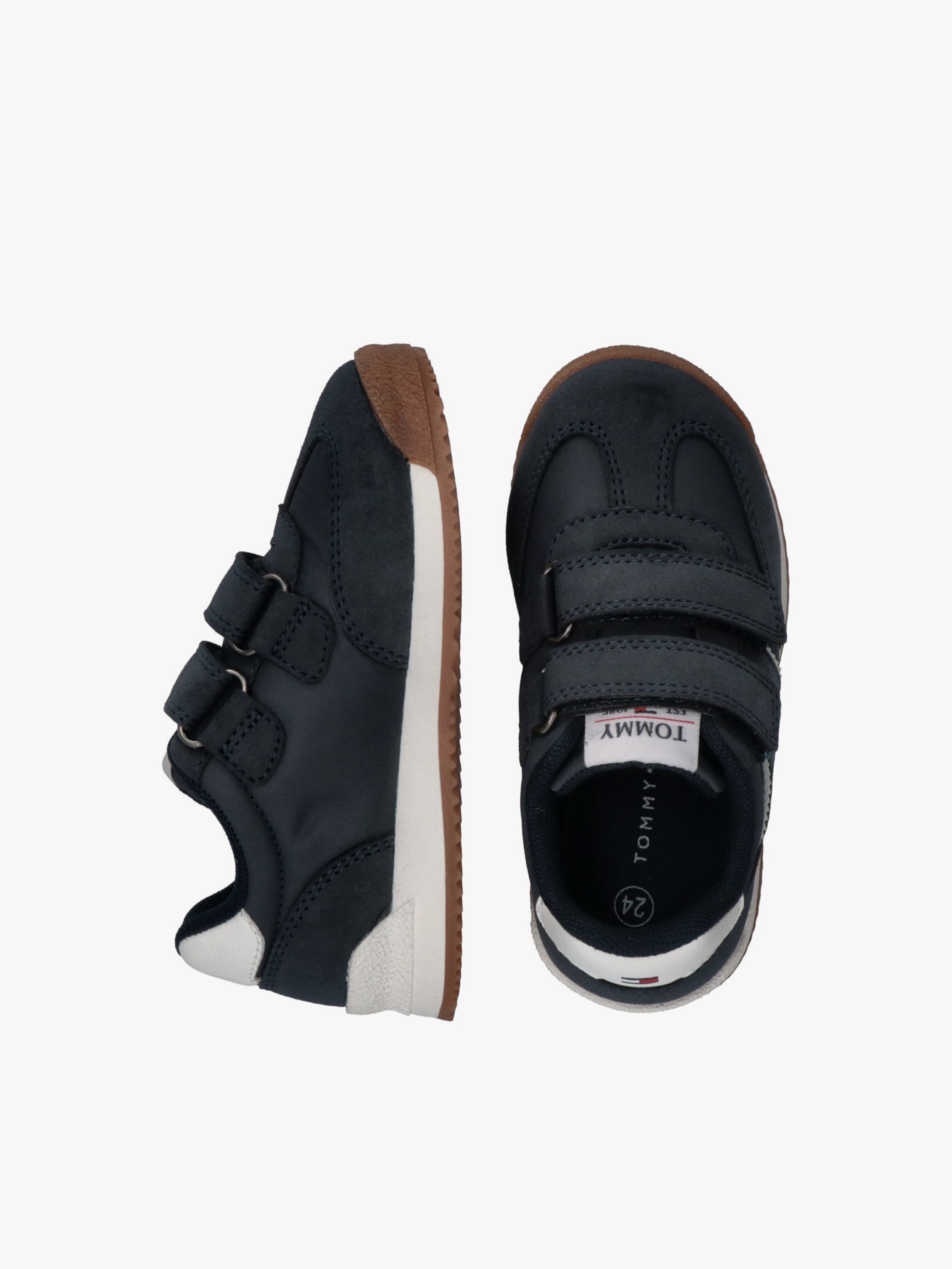 Tommy Hilfiger sneakers with a dynamic, running-style silhouette. The mixed-material upper adds a modern sporty look, while the cushioned sole offers flexibility and comfort. Finished with velcro fastening, ideal for active kids on the go.