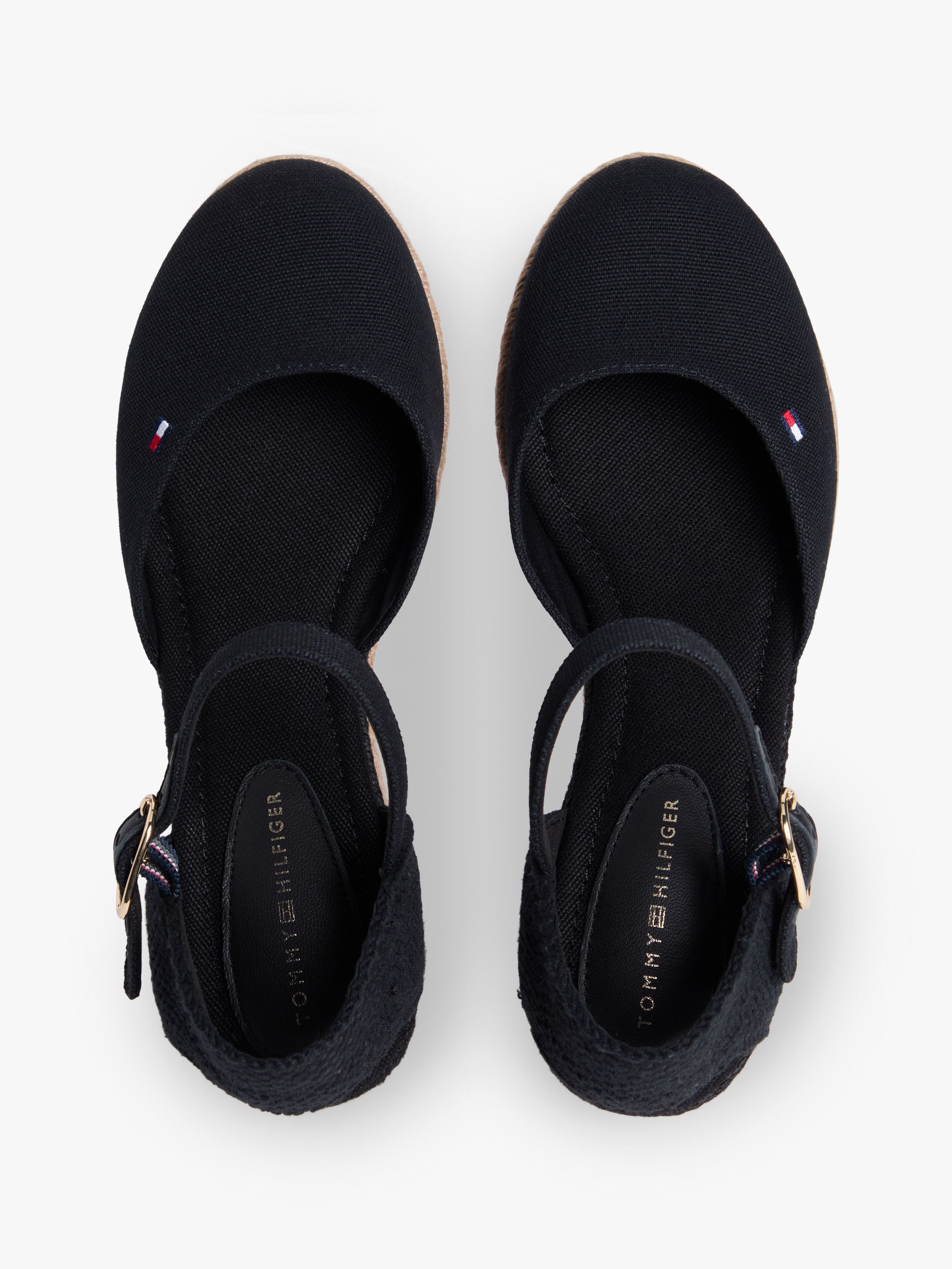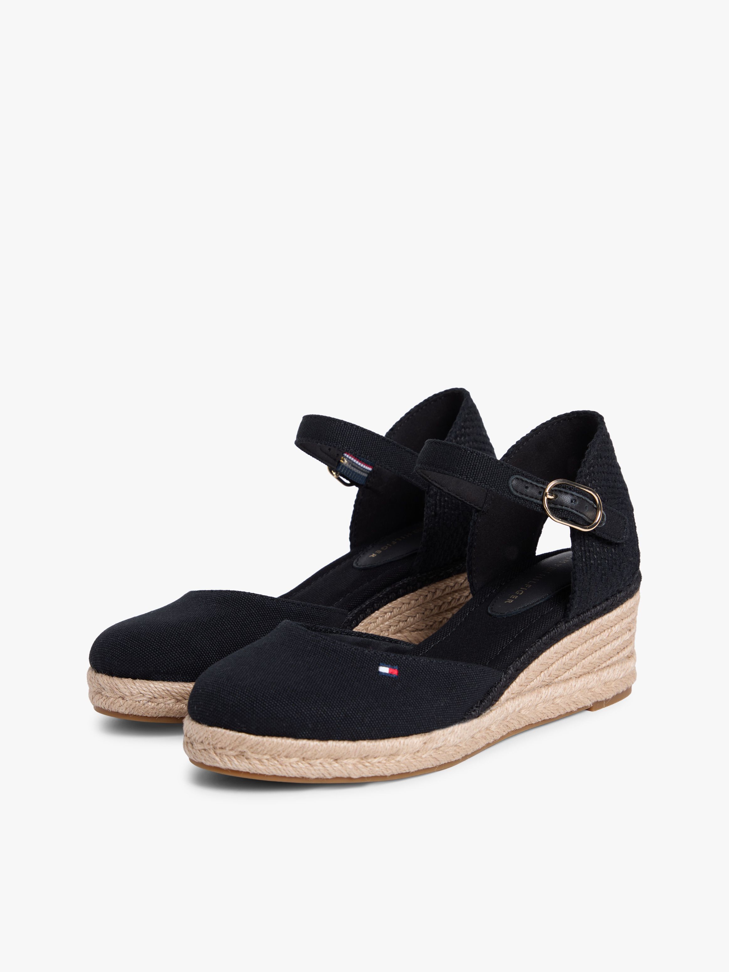 • Pure cotton canvas upper • Pure cotton lining • Thermoplastic rubber outsole • Wedge heel • Jute-covered heel and midsole • Ankle strap with buckle closure • Tommy Hilfiger branding • Tommy Hilfiger flag embroidery on front