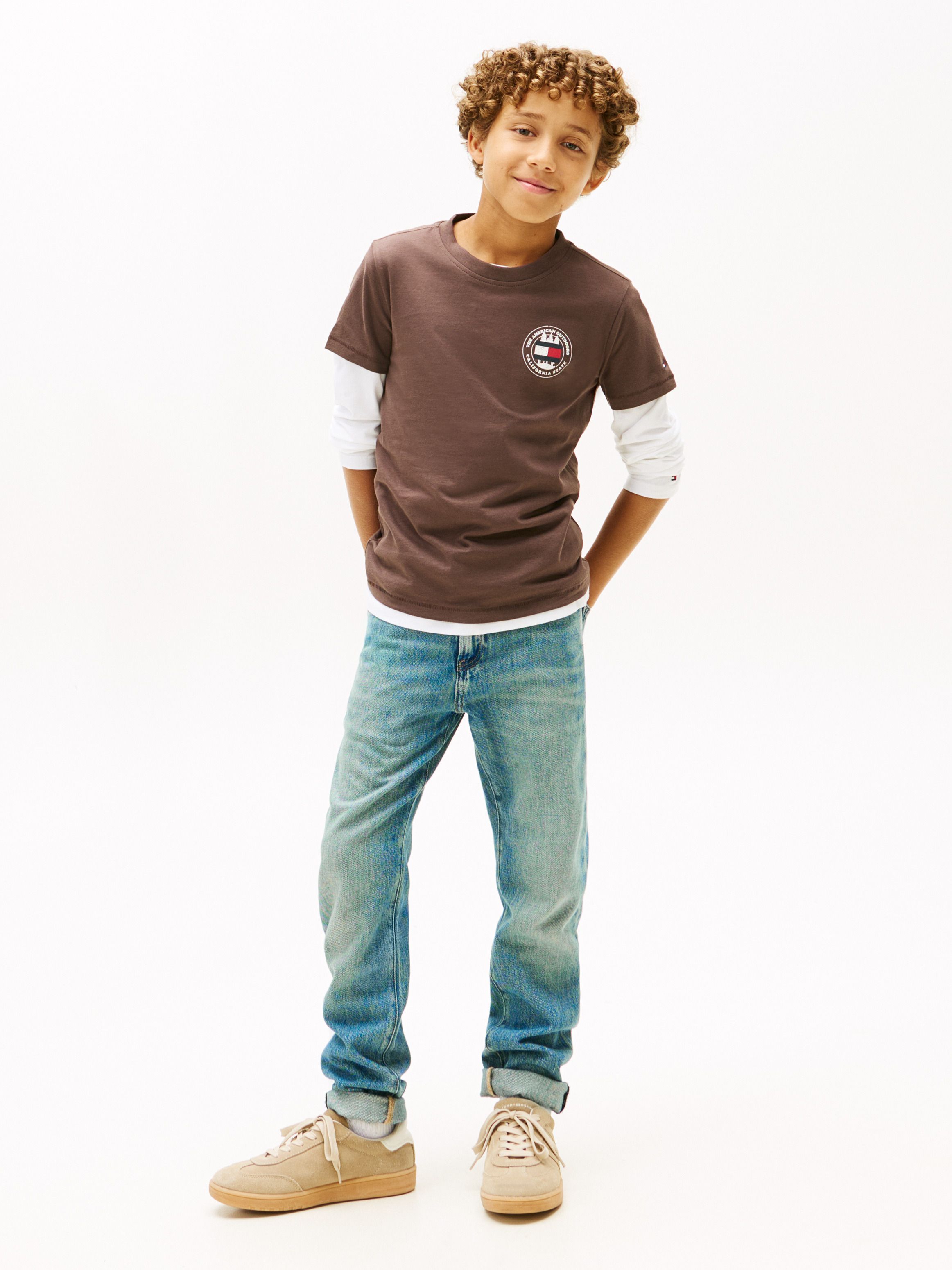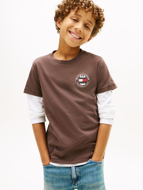 • Modern circle graphic t •shi silhouette • Brown tone for versatile styling • Crafted from REGENERATIVE COTTON (100%) • Signature Tommy Hilfiger detailing