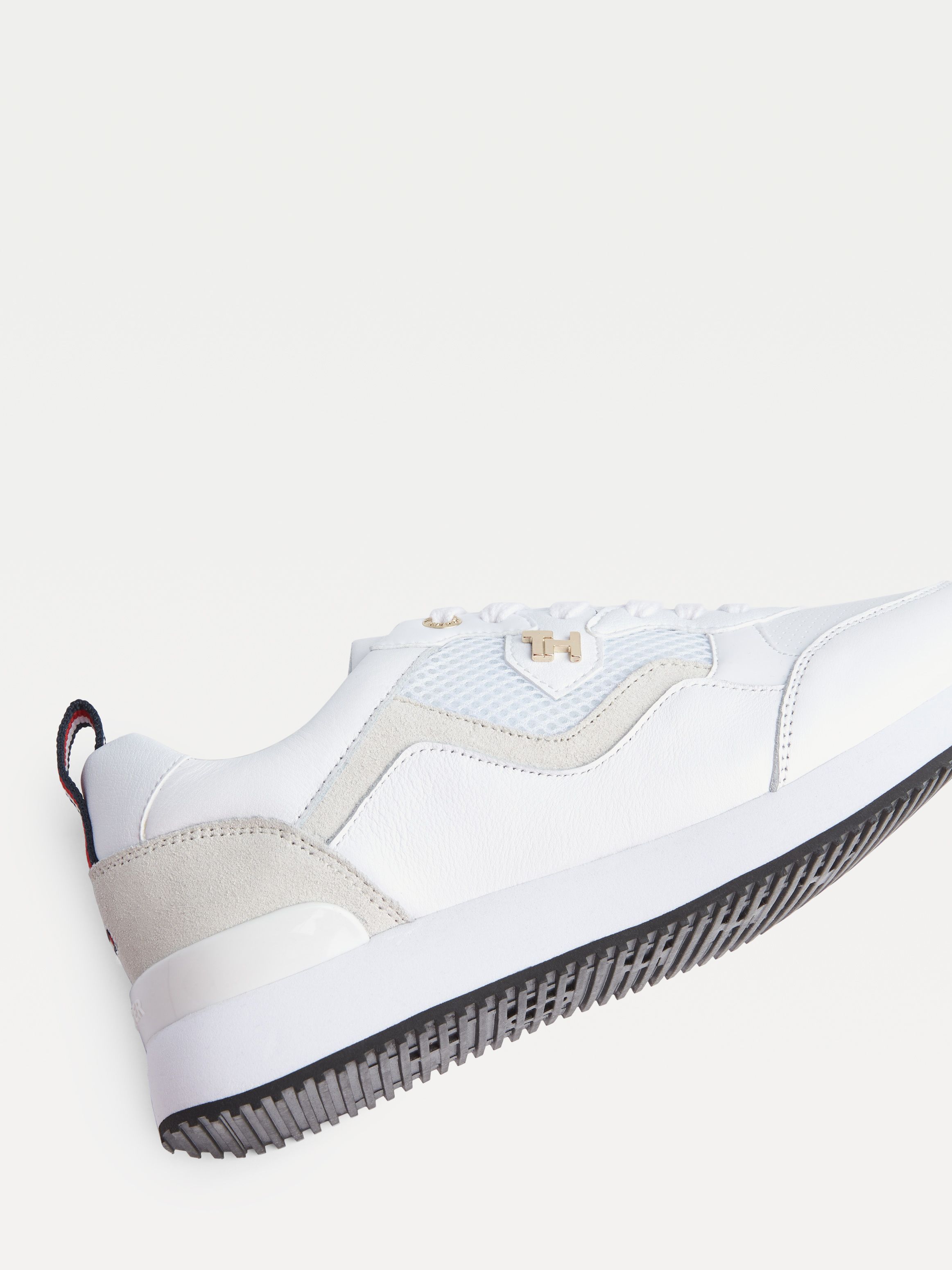 • Leather, polyurethane and polyester upper • Polyester and polyurethane lining • Polyester insock • Rubber outsole • Mesh panels on side • Pull-on loop at heel • Tommy Hilfiger monogram plaque on side • Tommy Hilfiger rubberised flag on back • Tommy Hilfiger branding