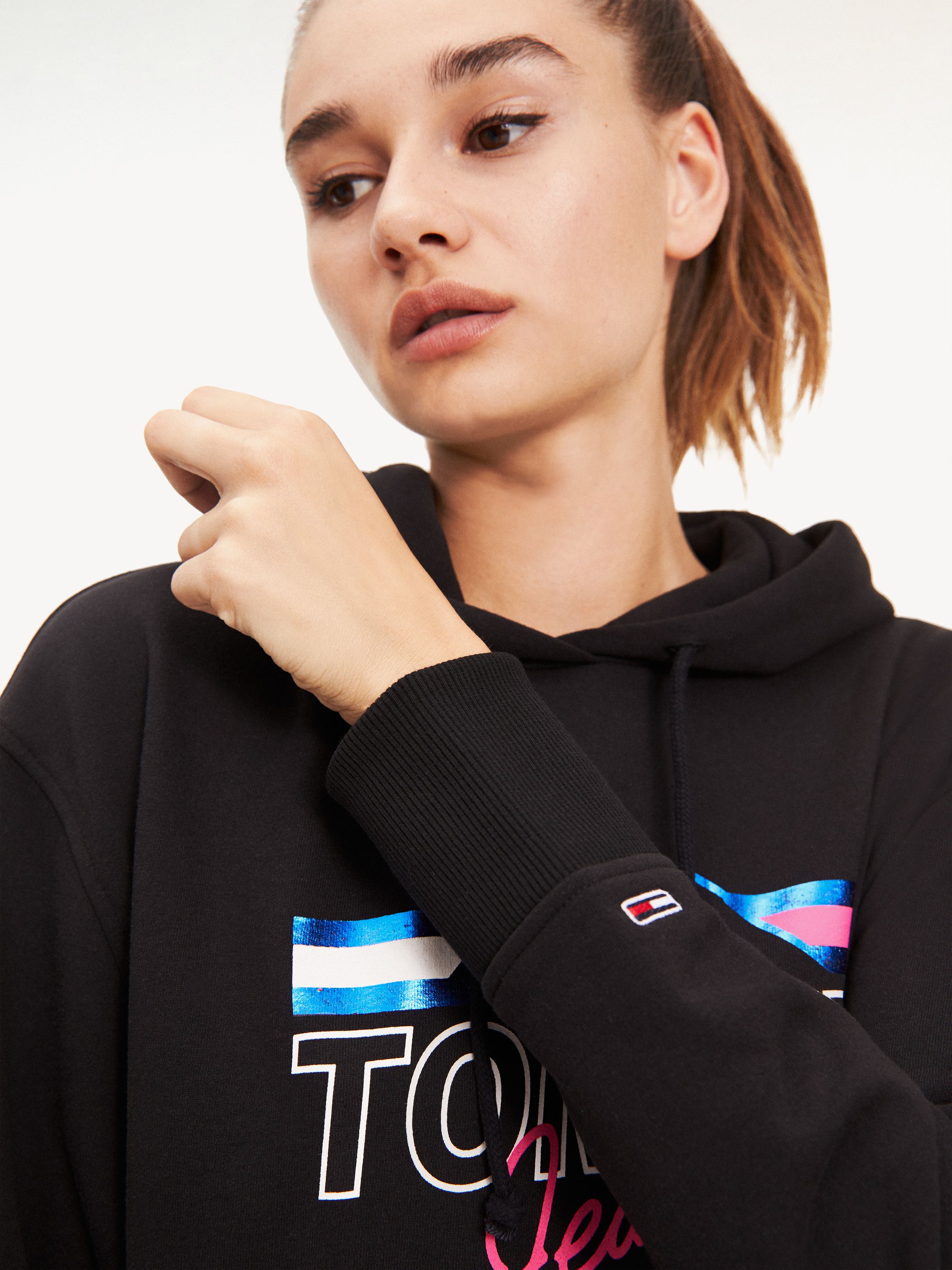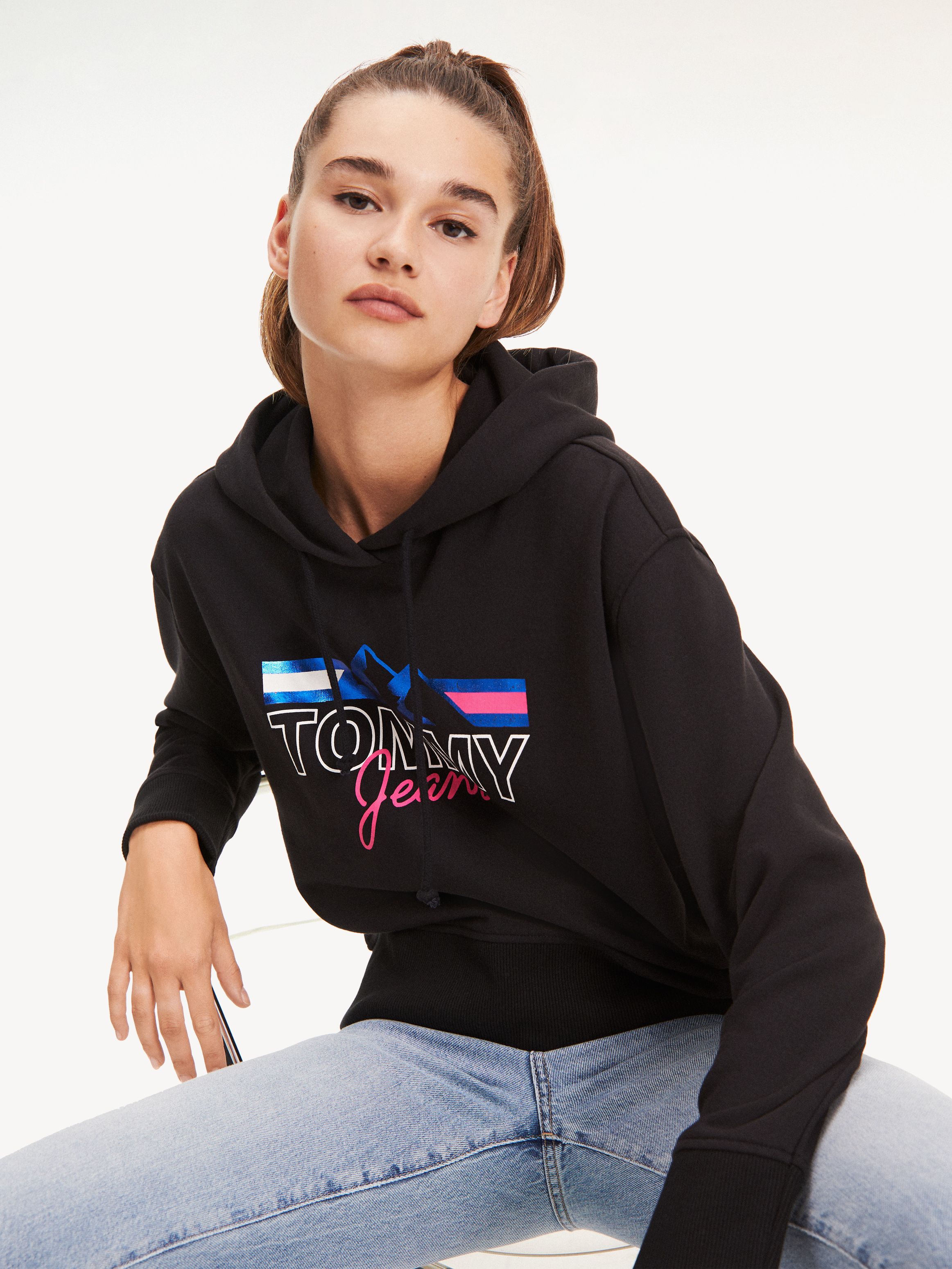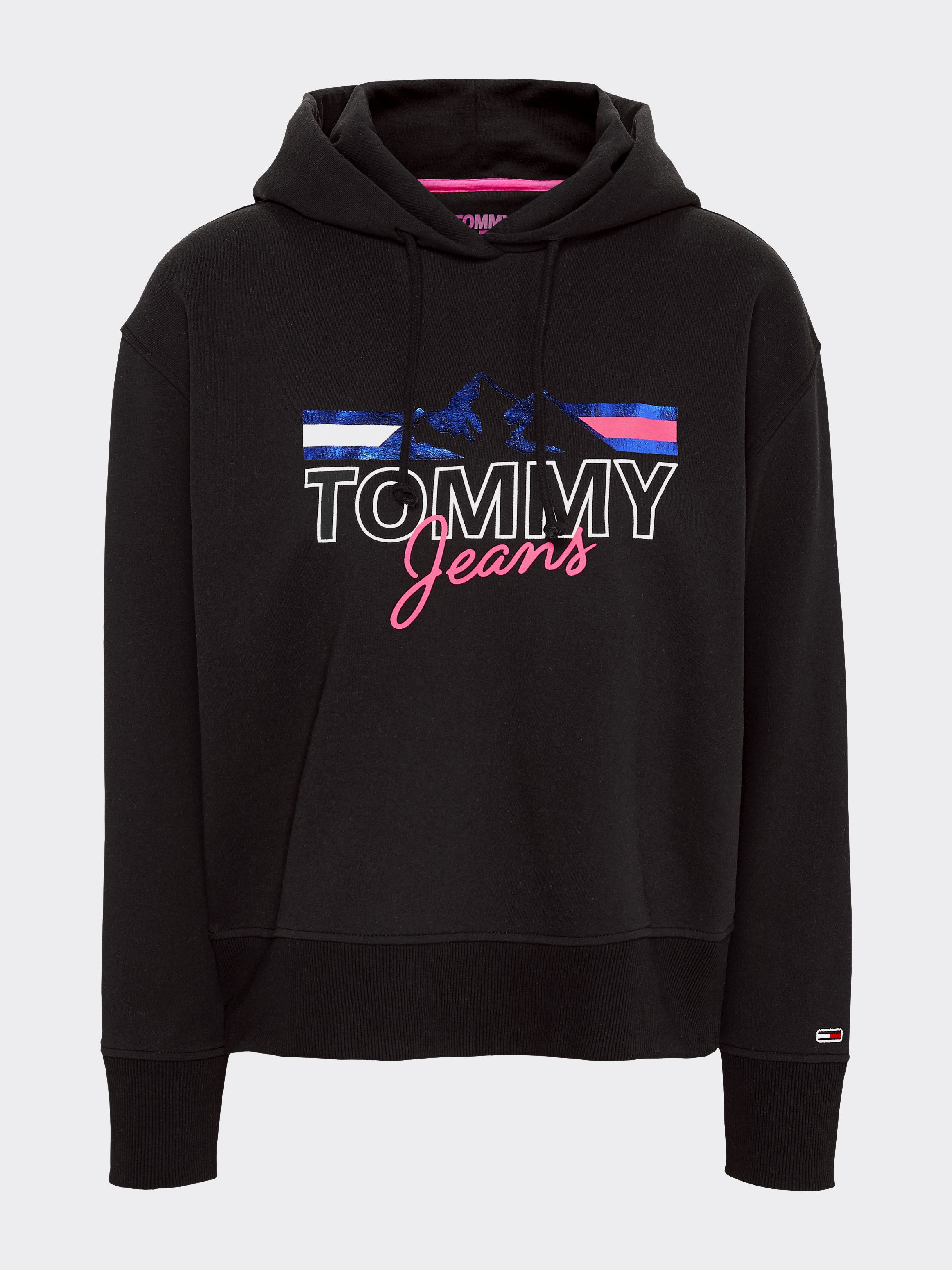 • Recycled cotton blend • Tommy Jeans expedition logo on chest • Hooded neck • Rib-knit cuffs and hem • Tommy Jeans branding • Tommy Jeans flag patch on cuff