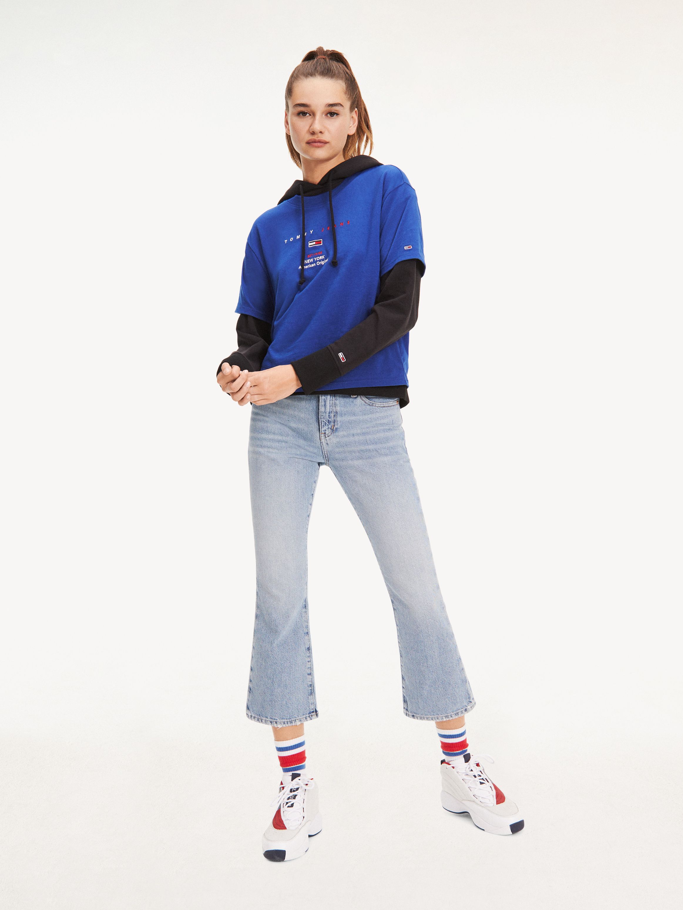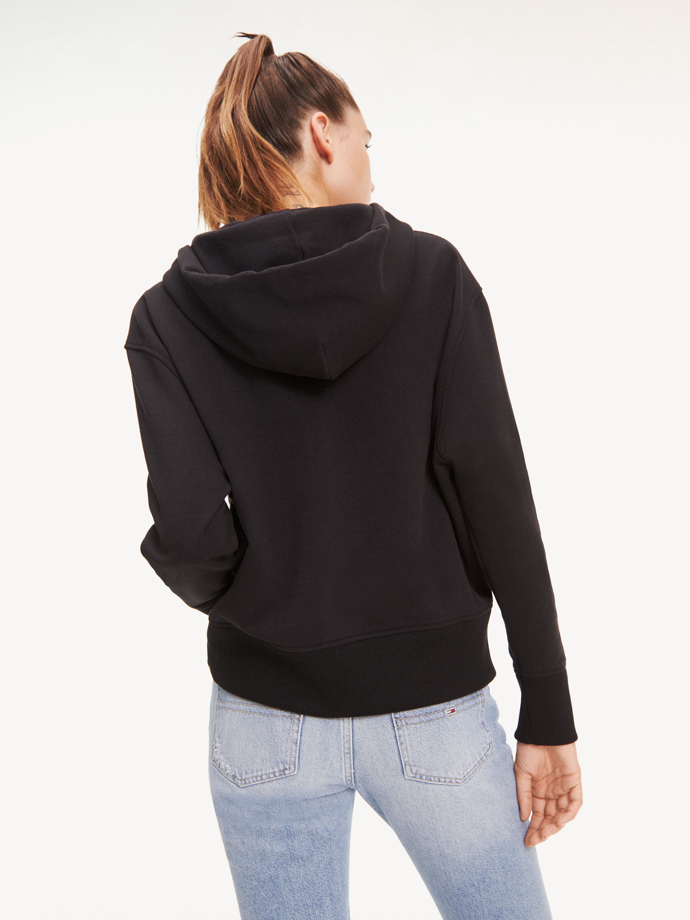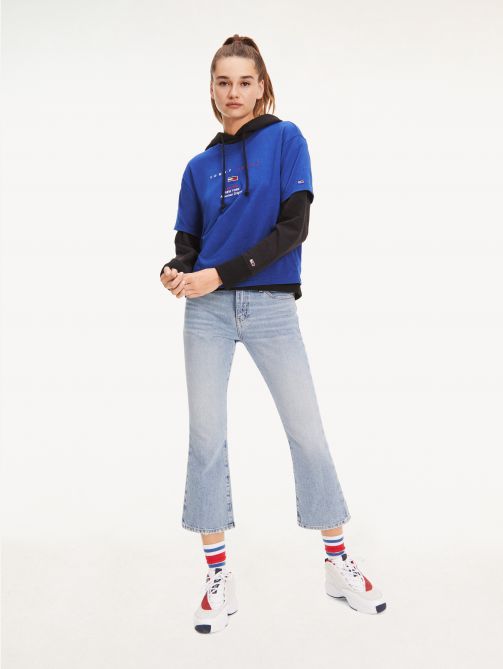 • Recycled cotton blend • Tommy Jeans expedition logo on chest • Hooded neck • Rib-knit cuffs and hem • Tommy Jeans branding • Tommy Jeans flag patch on cuff