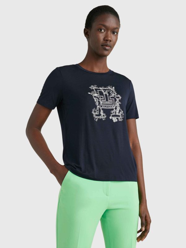 This sustainable viscose T-shirt is designed in a classic regular fit with floral monogram embroidery on the front for a subtle-meets-signature touch.