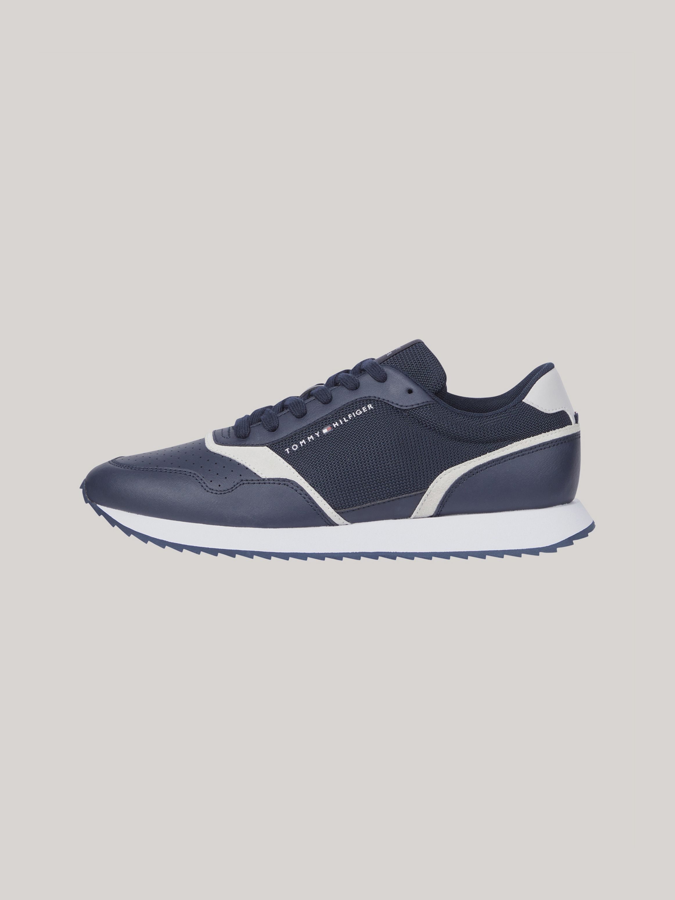 Embrace a classic athleisure look with these runner-style trainers, crafted from premium leather with serrated soles and breathable mesh uppers.