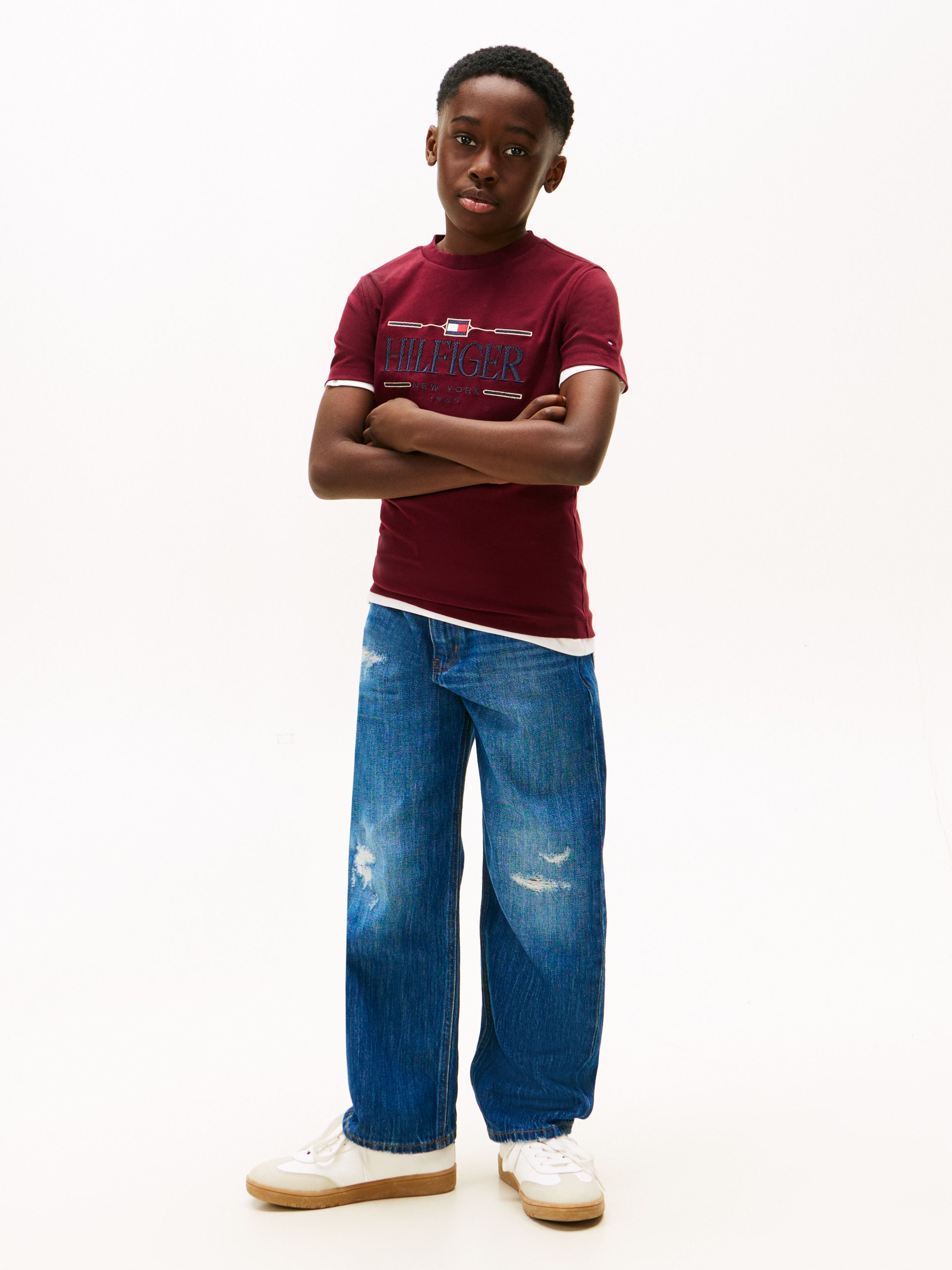• Pure mercerised cotton • Interlock knit • Crew neck • Signature tape on nape • Tommy Hilfiger NYC logo embroidery on chest • Tommy Hilfiger branding • Tommy Hilfiger flag embroidery on sleeve
