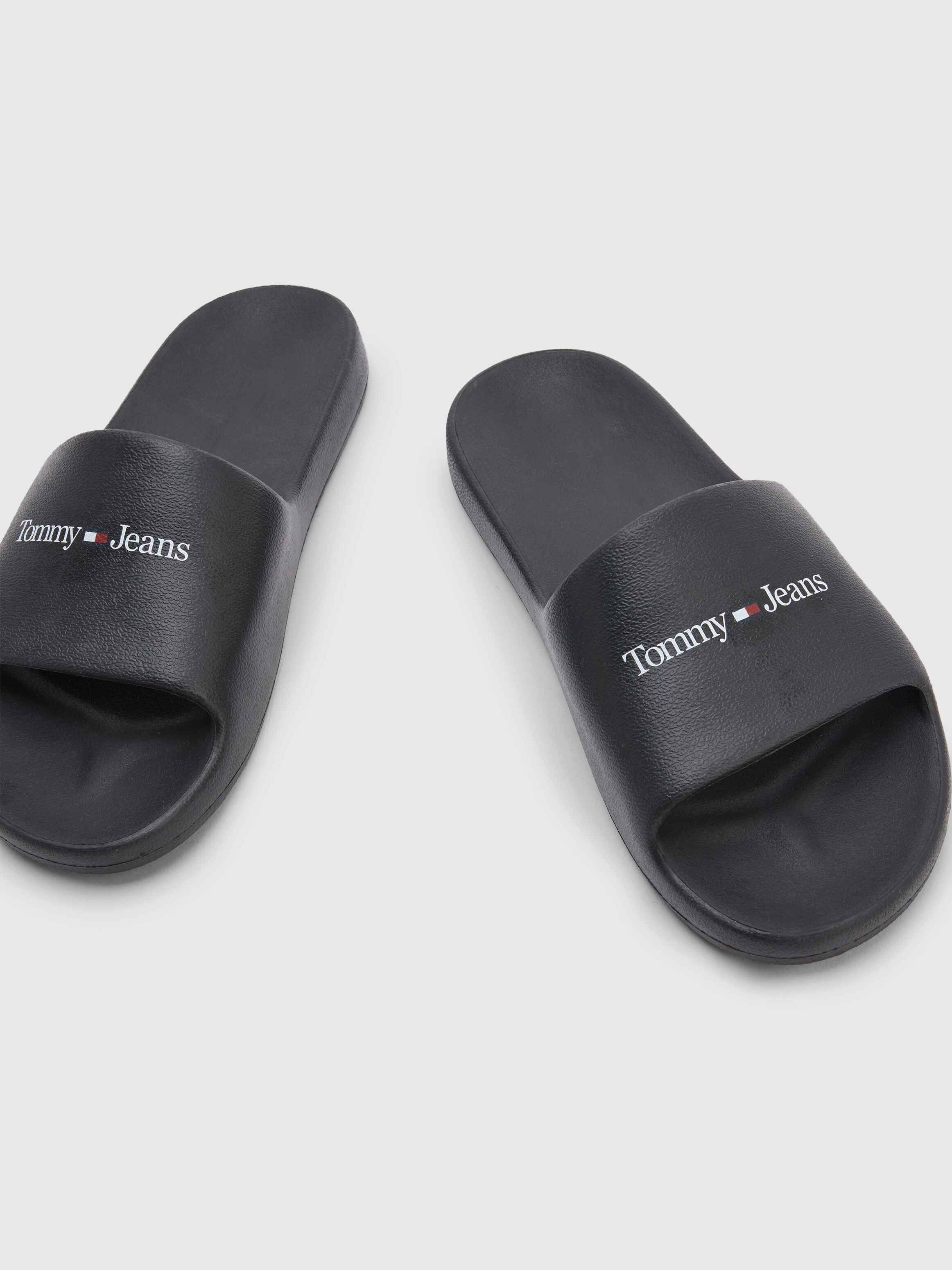 Slip into summer vibes in style with these pool slides, featuring a contrasting tommy jeans printed on the strap.