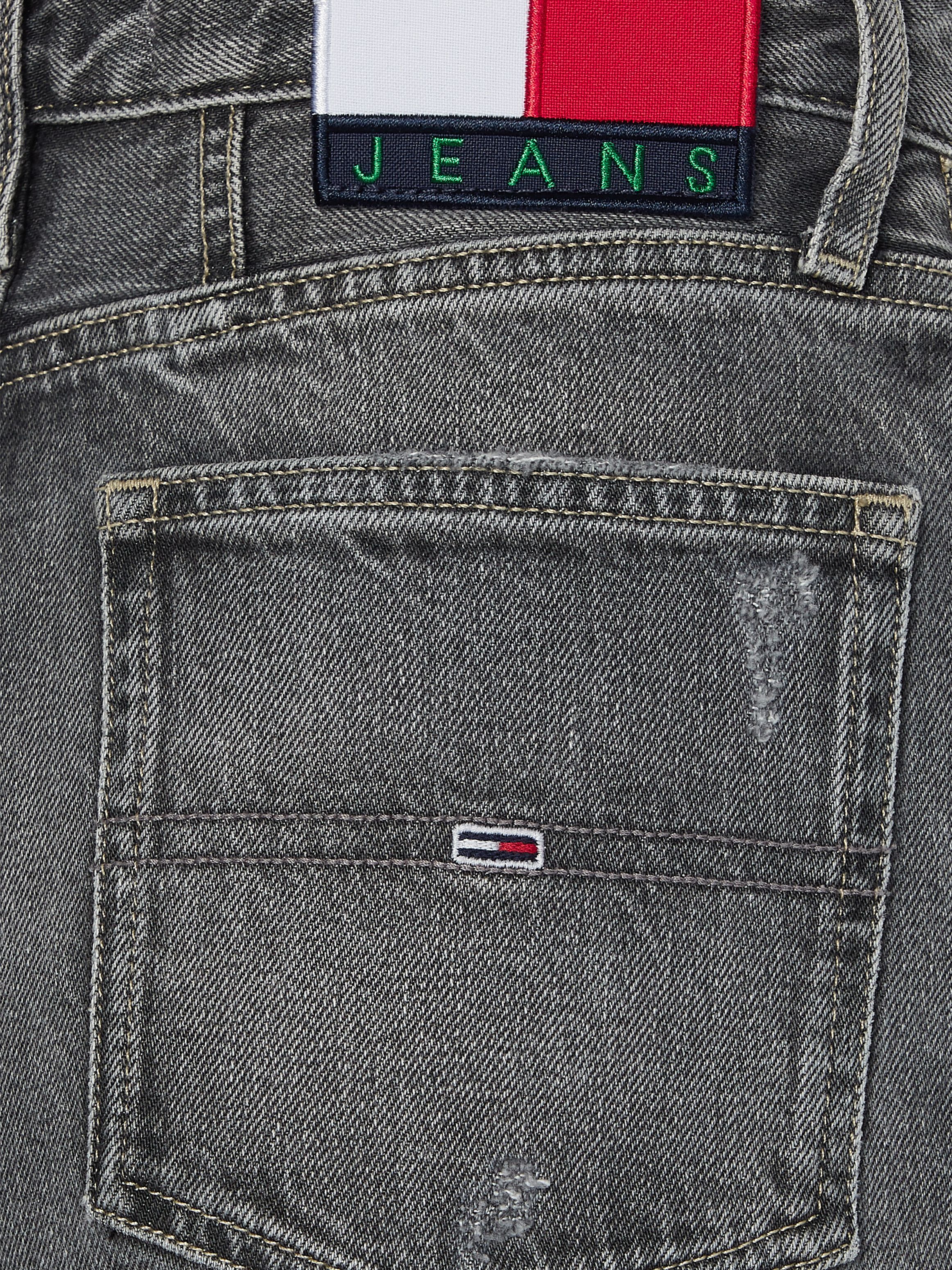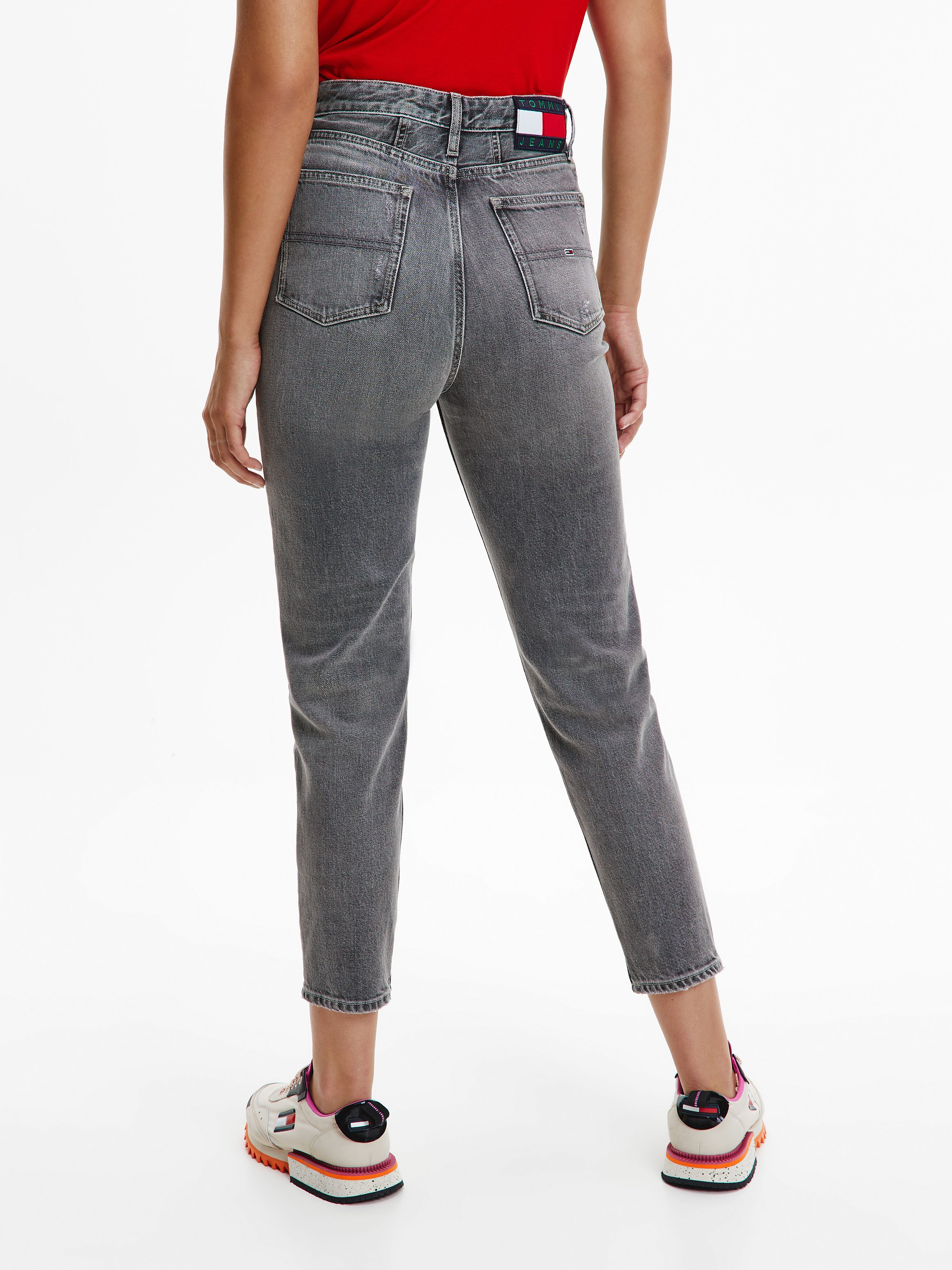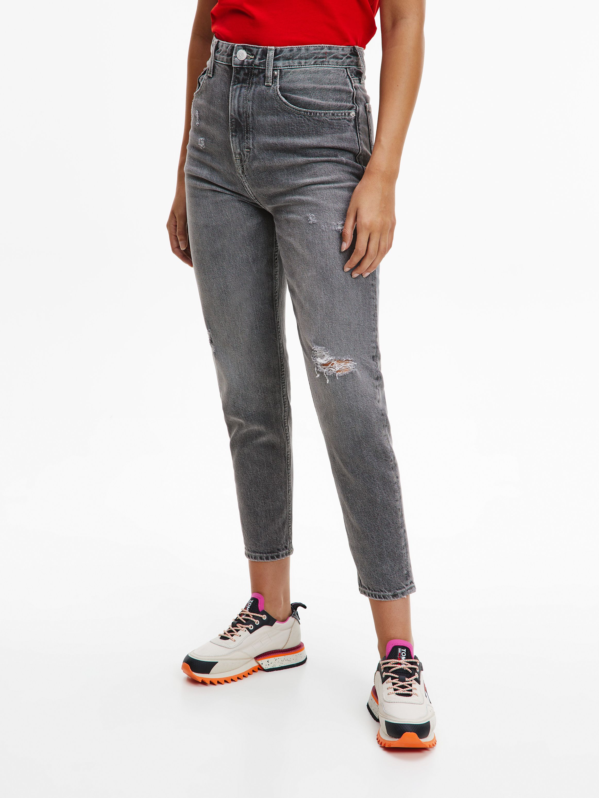 All-over fading and distressed touches give a relaxed look to these mom jeans with an elegant ultra high rise waist.