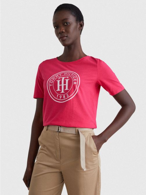 Bring a retro vibe to your staples in this elevated tee that features a collegiate-style Tommy Hilfiger logo on the front.