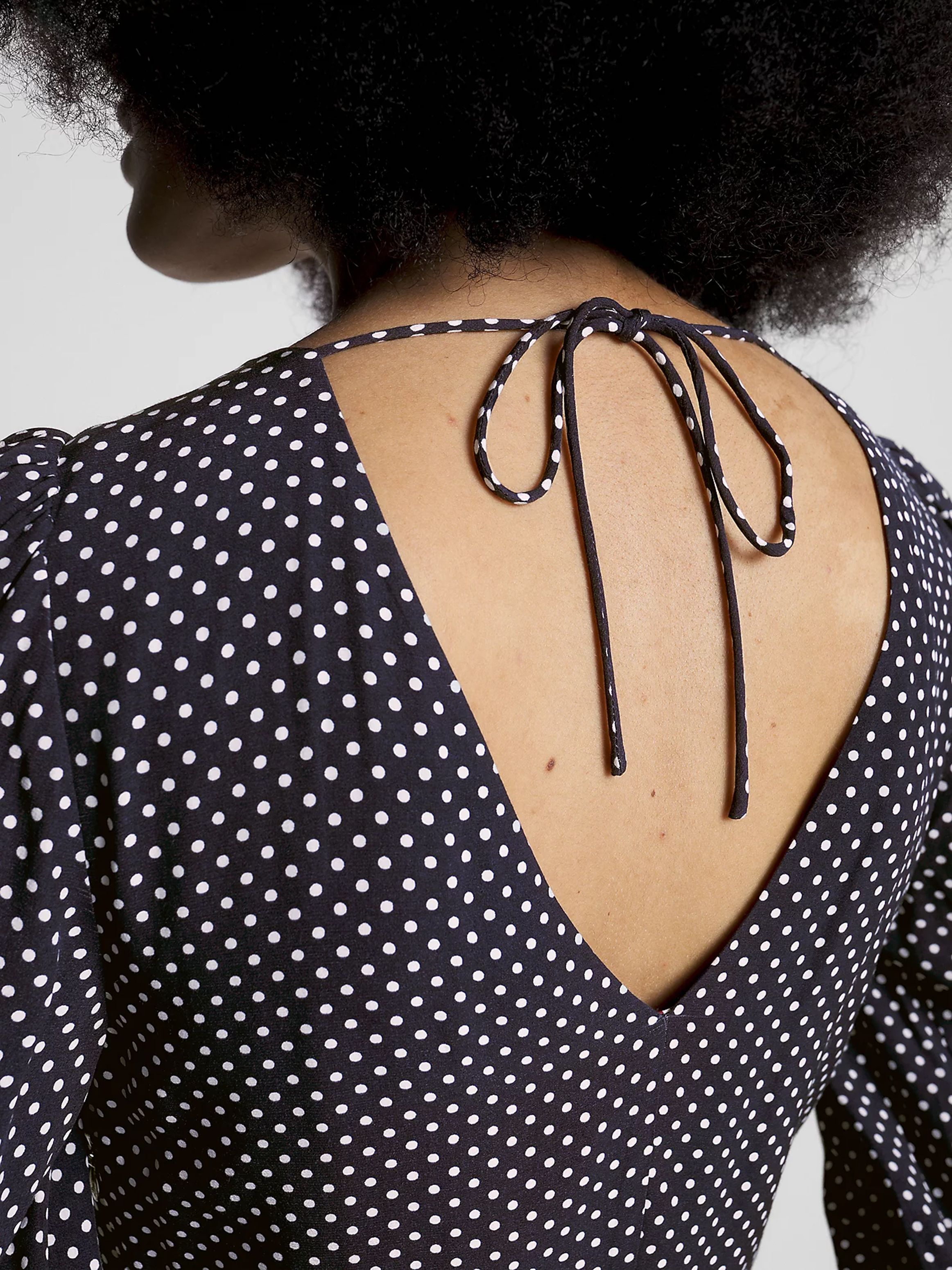 • Viscose • All-over polka dot print • Self-tie closure at back • V-neck • Elasticated one-button cuffs • Signature tape on cuffs • Tommy Hilfiger branding