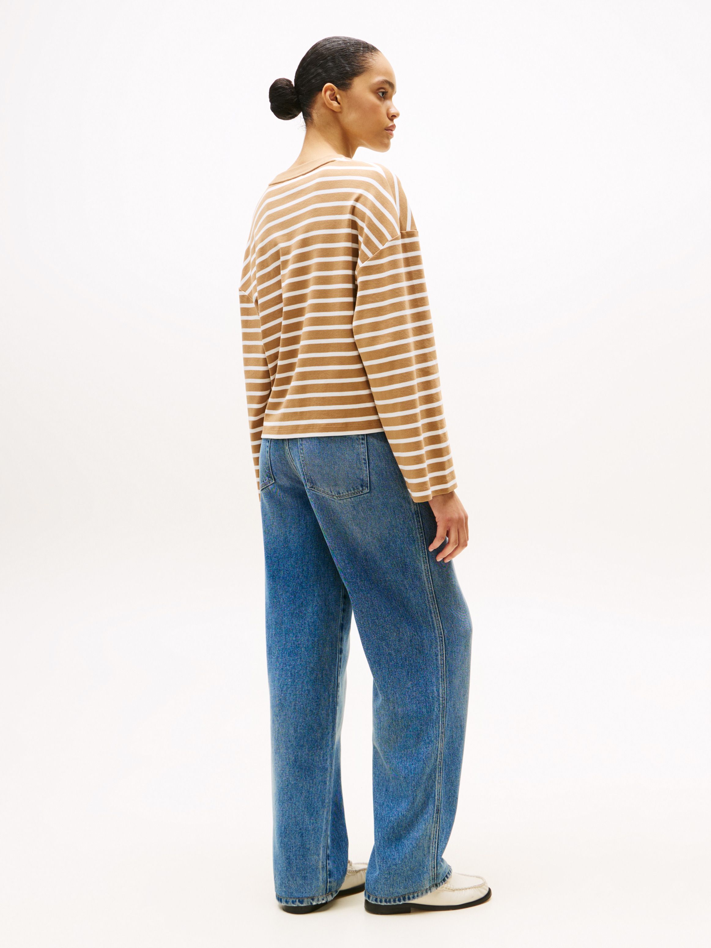 Dropped shoulders define the relaxed look of this long-sleeved T-shirt, made from pure cotton and finished with understated branding.