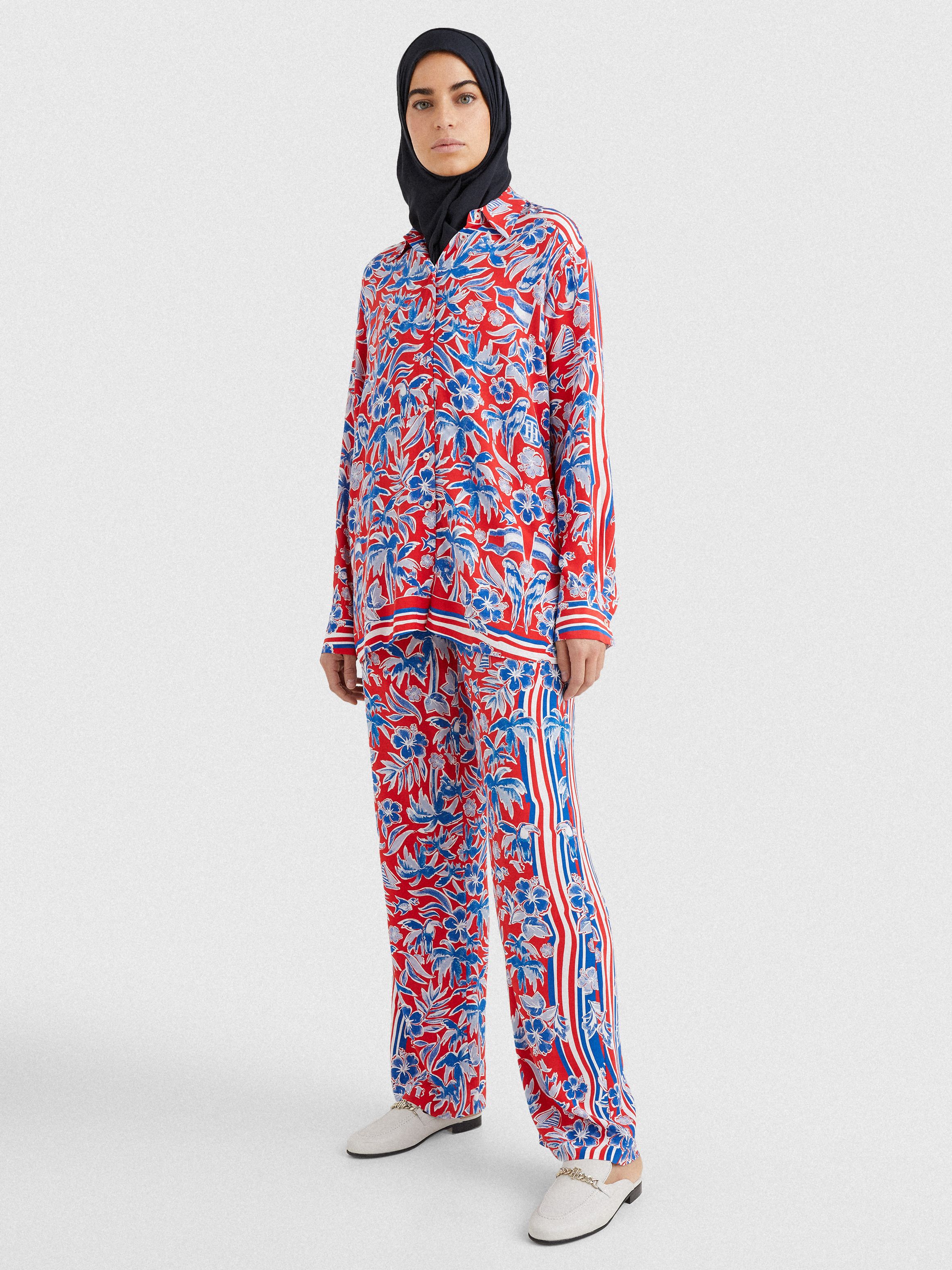 Brighten up your denims with this striking blouse that's cut in a comfortable relaxed fit and finished with a bold floral print.