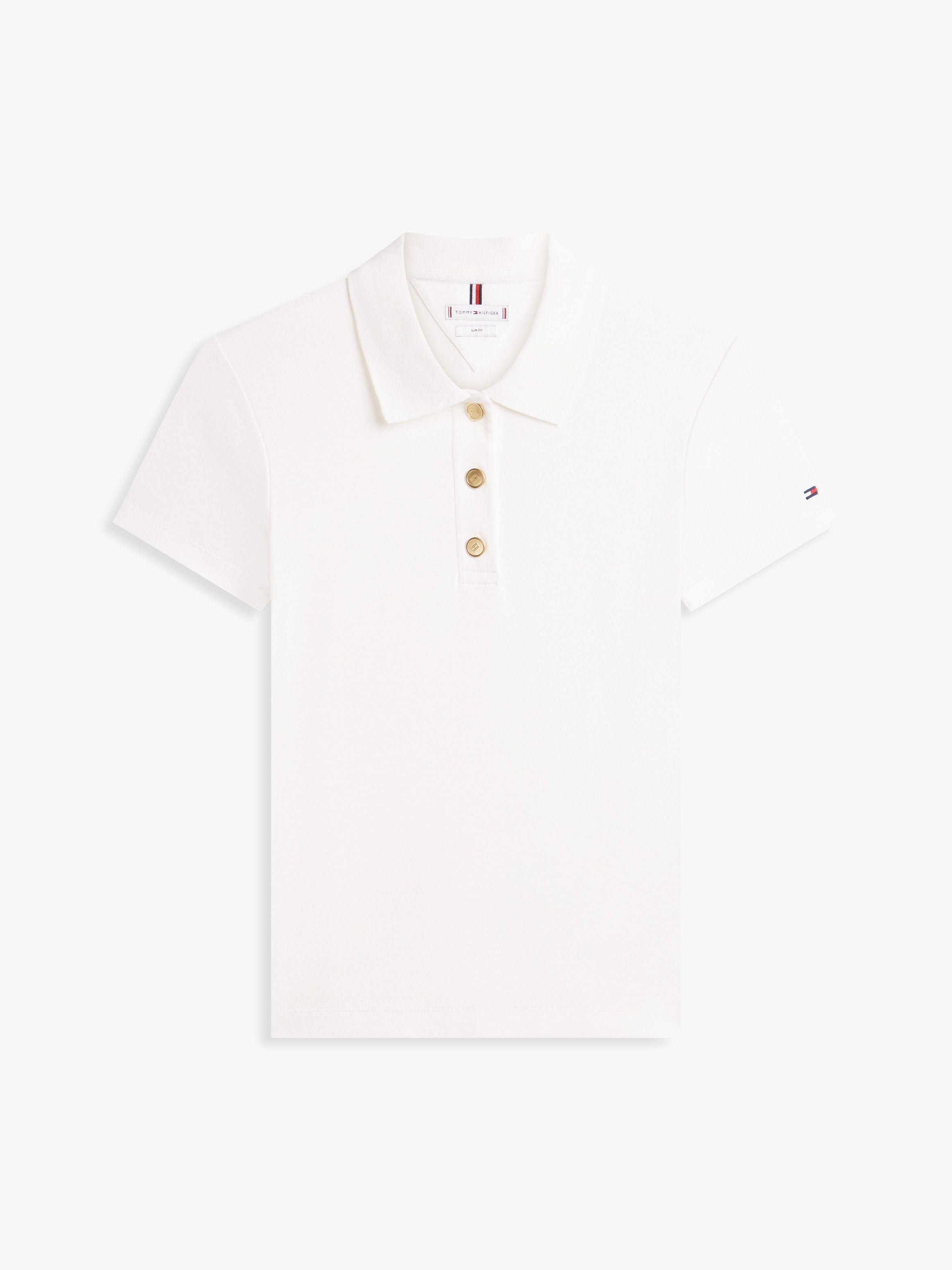 This slim-fitting polo shirt is a timeless piece, complete with a silky finish and gold-tone buttons showcasing embossed flag branding.