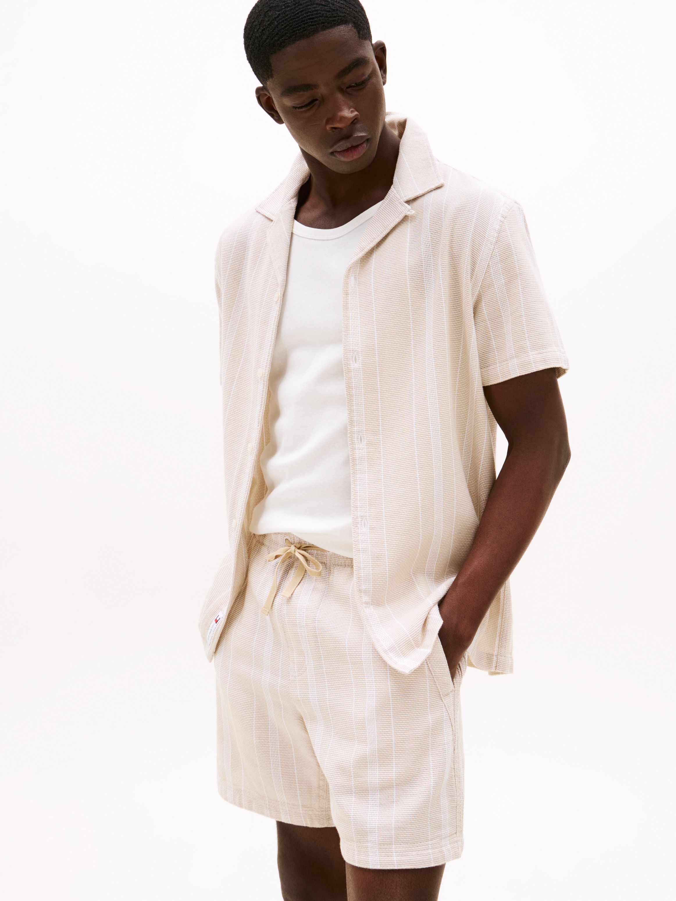 Hit the beach in these drawstring shorts, crafted from pure cotton and finished with refined vertical stripes plus Tommy badge branding.