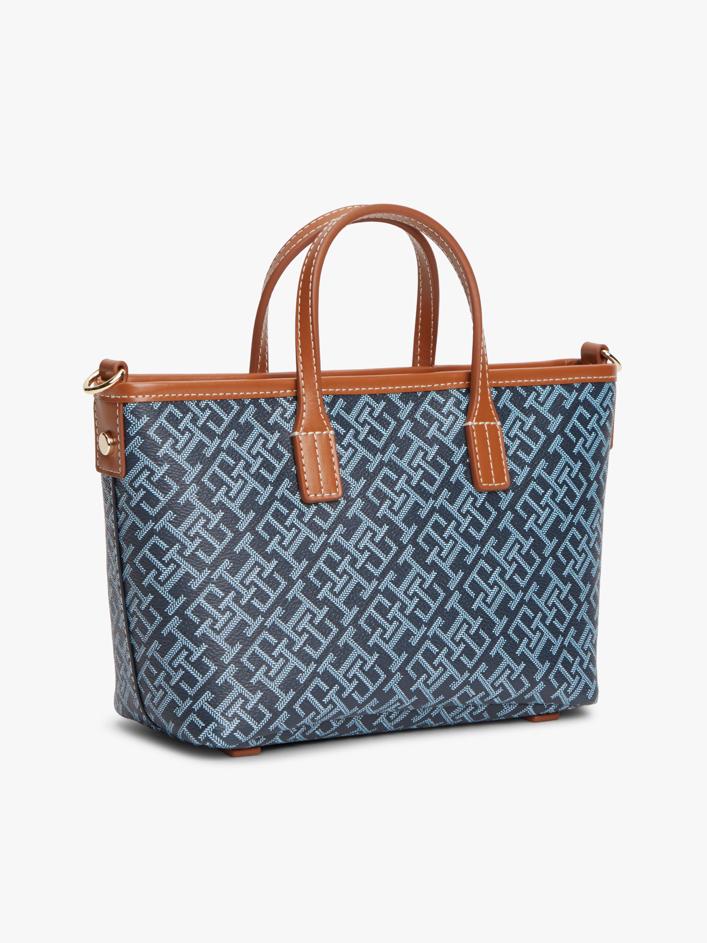 • Textured finish • All-over embossed TH monogram • Two top handles • Removable crossbody strap • One main compartment • TH monogram plaque on front • Tommy Hilfiger branding