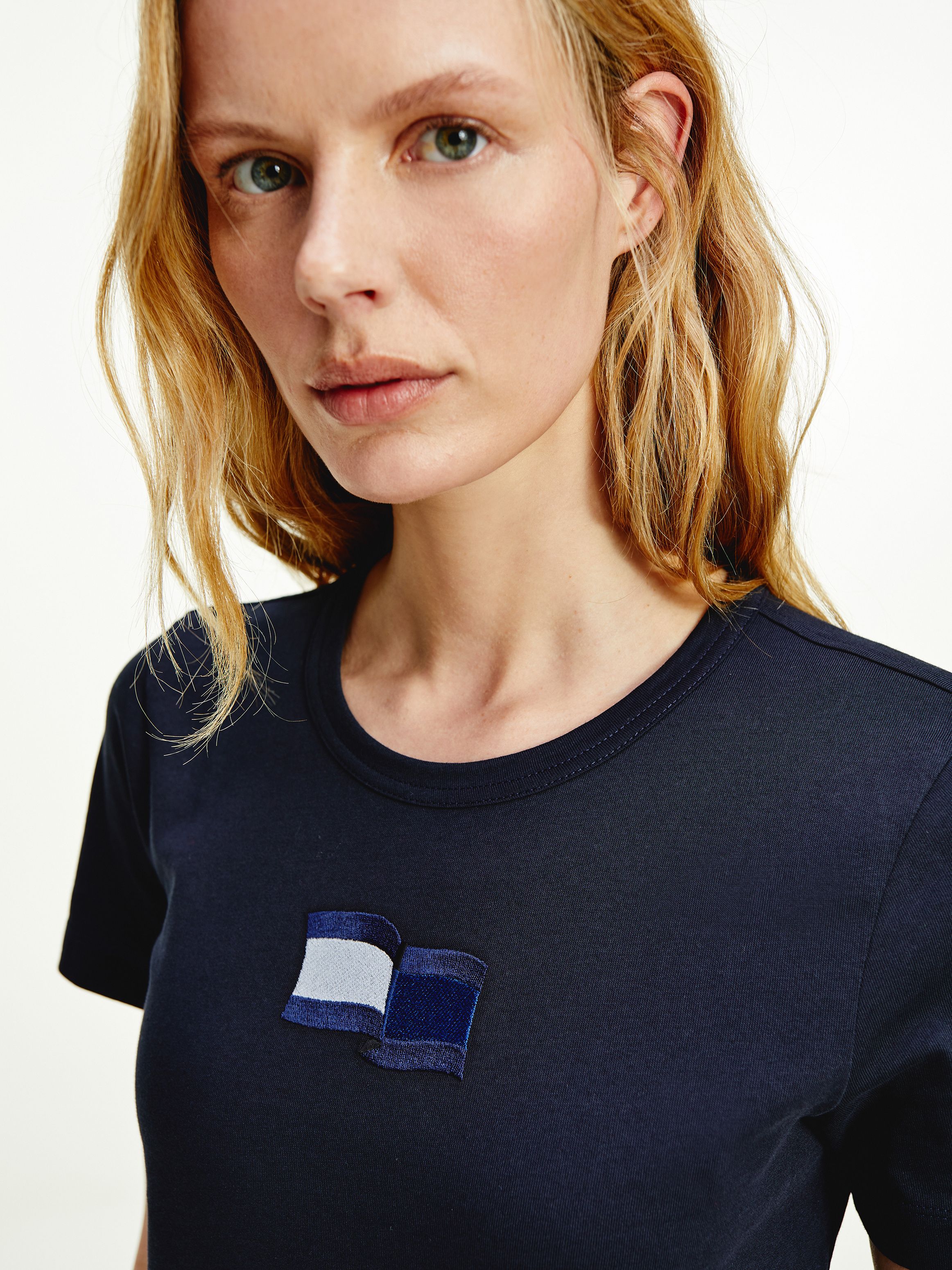 • Pure organic cotton jersey • Crew neck • Tommy Hilfiger motion flag embroidery on chest • Tommy Hilfiger flag embroidery on sleeve • Tommy Hilfiger branding