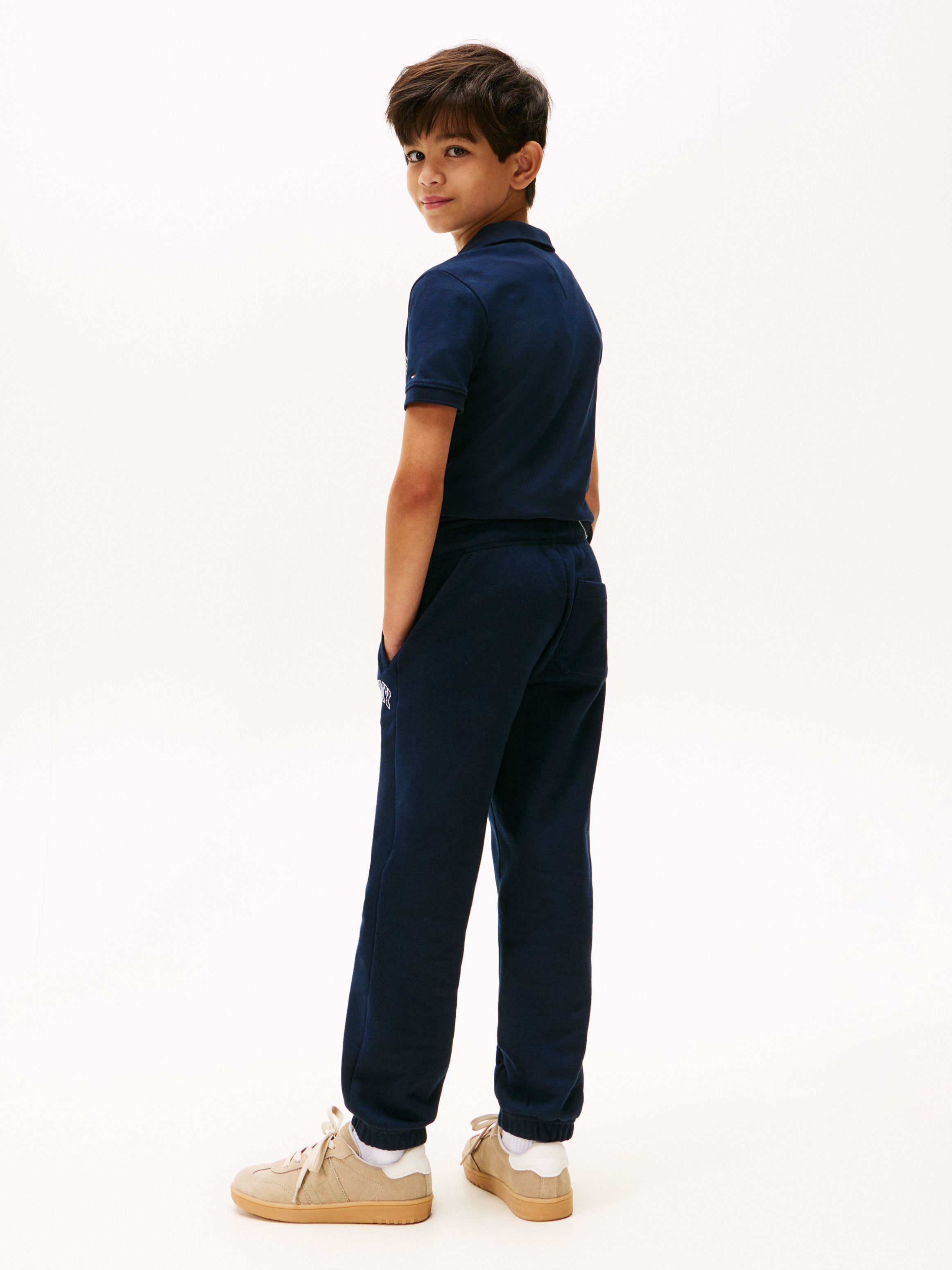 • Brushed cotton blend fleece • Elasticated drawstring waist • Two side slip pockets • One back patch pocket • Signature drawstring tips • Tommy Hilfiger raised logo print on leg • Tommy Hilfiger branding • Tommy Hilfiger flag embroidery on back pocket