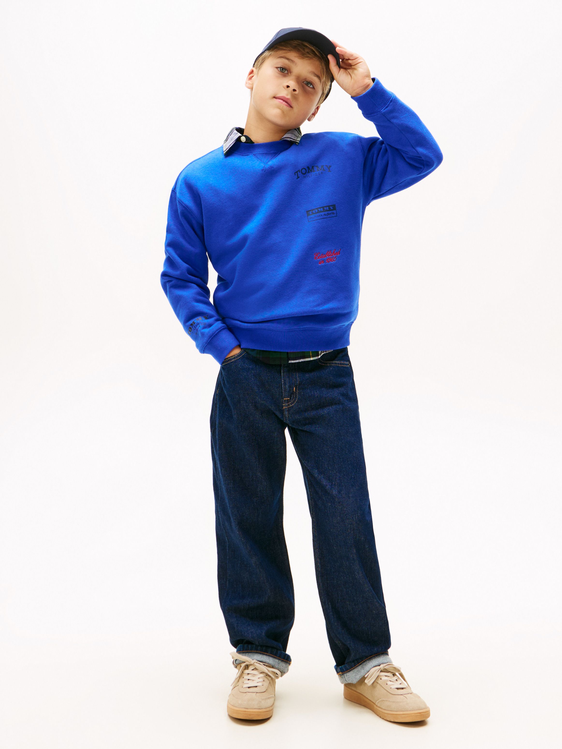 • Cotton blend • Rib-knit cuffs and hem • Tommy Hilfiger logos on front, back and sleeves • Tommy Hilfiger branding • Tommy Hilfiger flag embroidery on sleeve